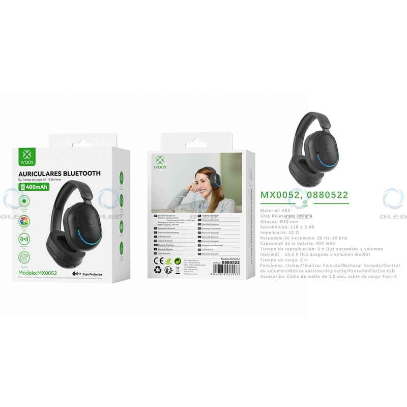 WOOX MX0052 AURICULARES CASCO INALÁMBRICOS ABS BLUETOOTH 400MAH NEGRO