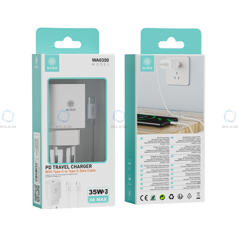IKREA WA0350 CARGADOR PD CON CABLE TYPE-C TO TYPE-C 35W 3A MAX BLANCO..