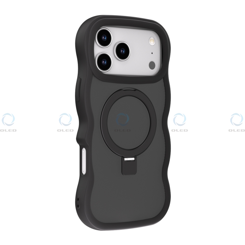 WOOX MX0410 FUNDA ONDULADA CON SOPORTE ANILLO PARA IPHONE 17 NEGRA