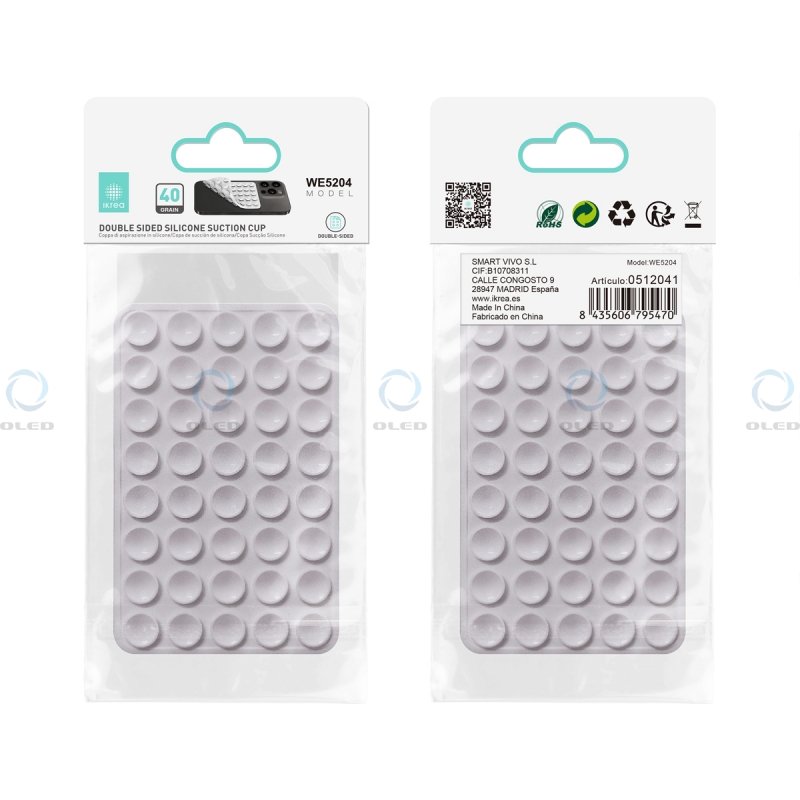IKREA WE5204 SOPORTE DE SUCCIÓN DOBLE CARA DE SILICONA CON 40 VENTOSAS PARA MÓVIL BLANCO