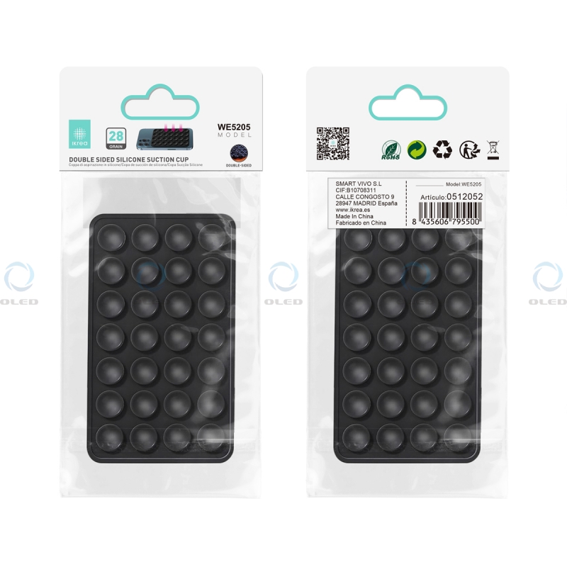 IKREA WE5205 SOPORTE DE SUCCIÓN DOBLE CARA DE SILICONA CON 28 VENTOSAS PARA MÓVIL NEGRO