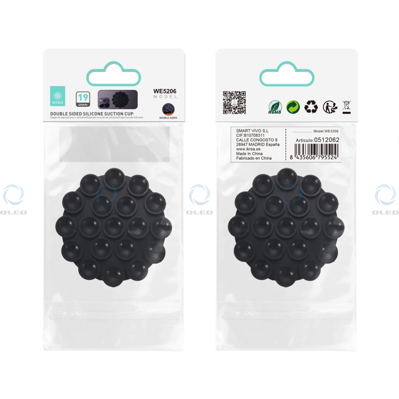 IKREA WE5206 SOPORTE DE SUCCIÓN DOBLE CARA DE SILICONA CON 19 VENTOSAS PARA MÓVIL NEGRO