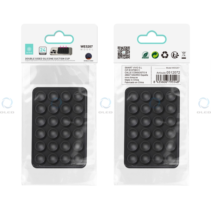 IKREA WE5207 SOPORTE DE SUCCIÓN DOBLE CARA DE SILICONA CON 24 VENTOSAS PARA MÓVIL NEGRO..