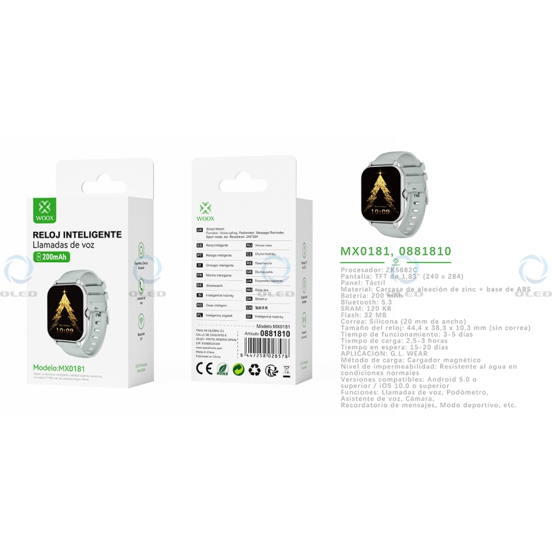 MX0181 Bluetooth Smart Watch Bracelet V5.3 ZK5682C 180mAh -Gris..
