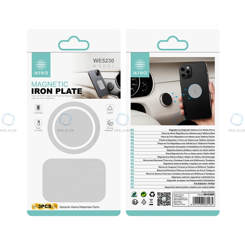 IKREA WE5230 PLACA DE HIERRO MAGNÉTICA CON ADHESIVO PARA MÓVIL 3 EN 1 PLATA..