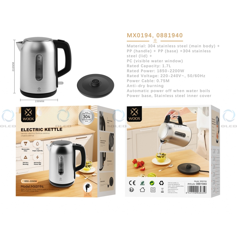 MX0194 HERVIDOR ELÉCTRICO 1.7L 1850W-2200W - PLATA