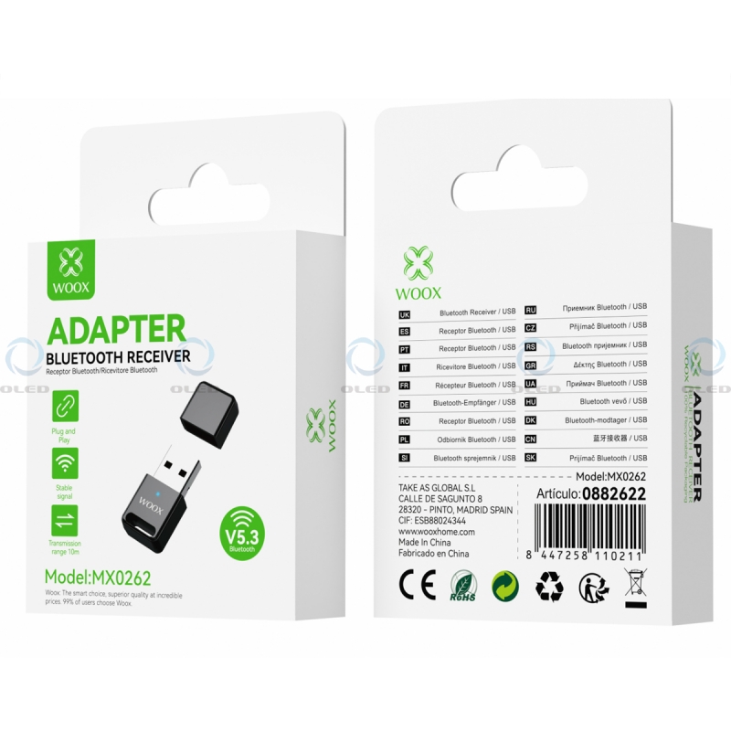 WOOX MX0262 RECEPTOR BLUETOOTH 5.3 USB PARA COCHE Y SISTEMA DE AUDIO