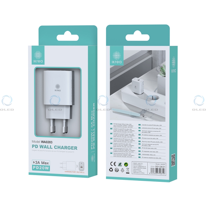 IKREA WA0283 CARGADOR PD PUERTO TYPE-C 20W 3A BLANCO..