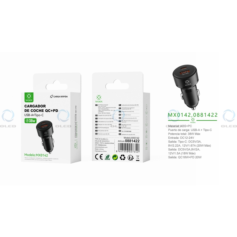 MX0142 PD+QC Cargador Para Coche QC18W+PD20W Sin Cable-Negro