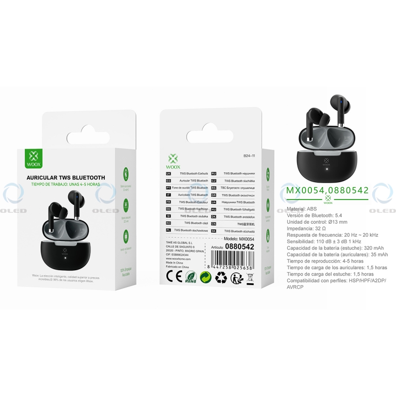MX0054 TWS Auriculares Inalámbricos V5.4 JL6983D2 320mAH/35mAH -Negro..
