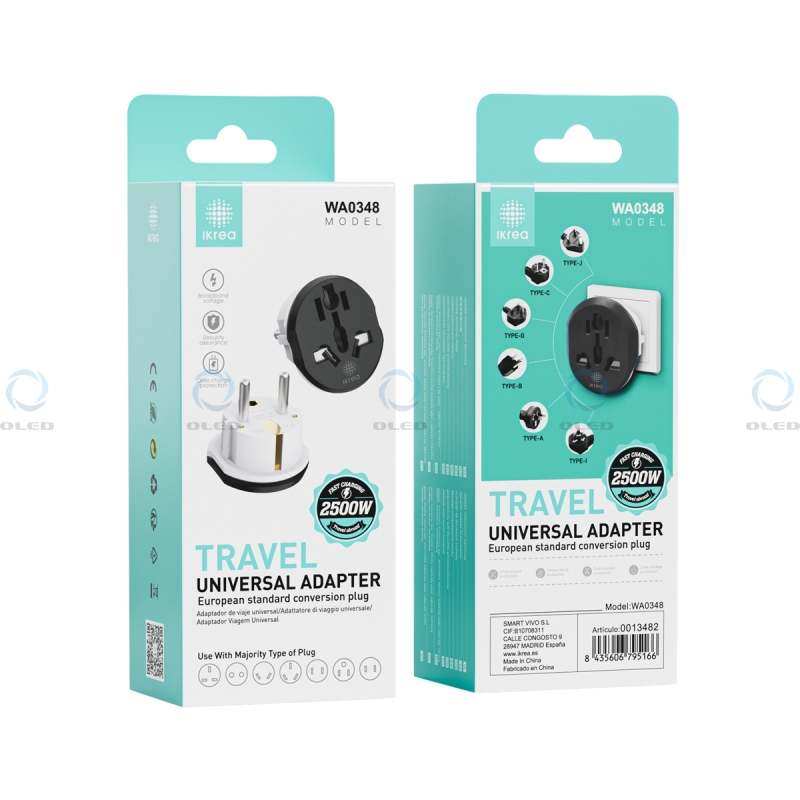IKREA WA0348 ADAPTADOR DE VIAJE UNIVERSAL ESTÁNDAR EUROPEO 2500W MAX