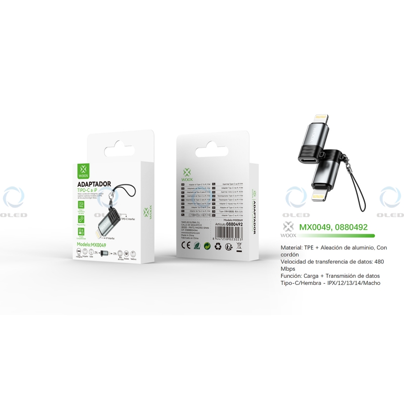 MX0049 Adaptador Type-C/F To Lightning/M -Negro