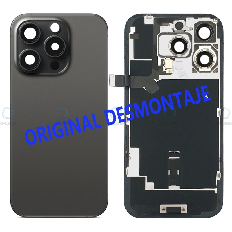 Tapa trasera con soporte para iPhone 16 Pro negra original desmontaje..