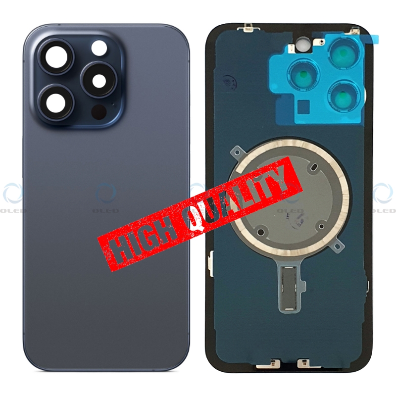 Tapa trasera con soporte tallada en frío integrado para iPhone 15 Pro Max azul