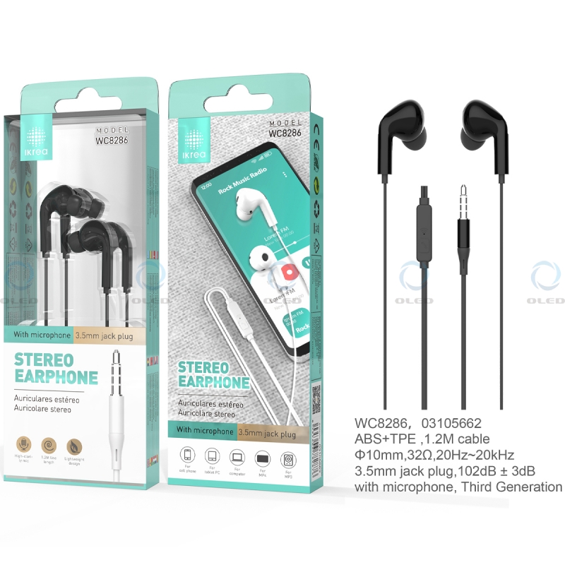 IKREA WC8286 AURICULARES STEREO CON MICRÓFONO ASB+TPE 1.2M 3.5MM 3ª GENERACIÓN NEGRO..