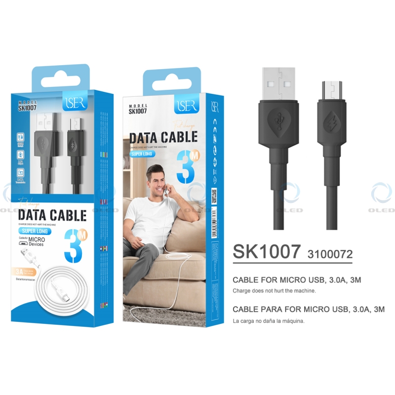 ISER SK1007 CABLE MICRO USB 3.0A 3M OD4.0 NEGRO..