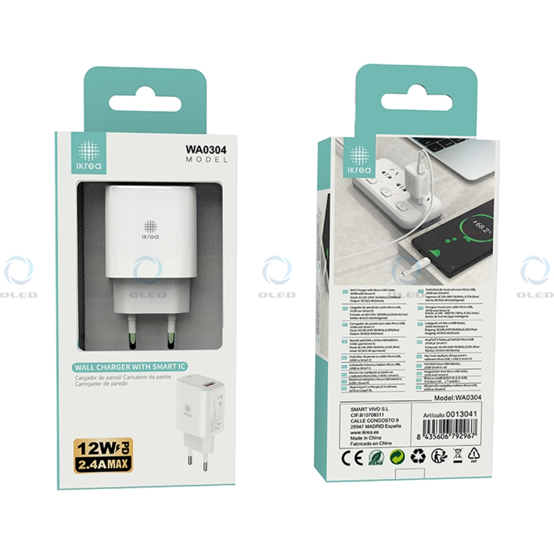 IKREA WA0304 CARGADOR PD 1 PUERTO USB-A CON SMART IC 12W 2.4A MAX BLANCO