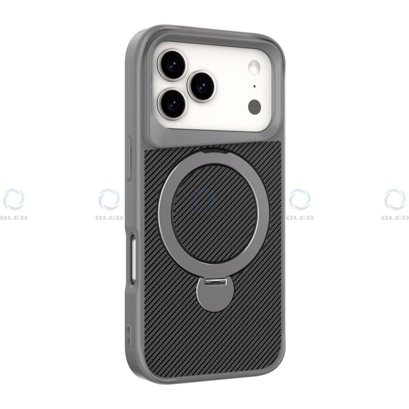 WOOX MX0405 FUNDA DE FIBRA DE CARBONO CON SOPORTE ANILLO 360° PARA IPHONE 17 PRO MAX GRIS